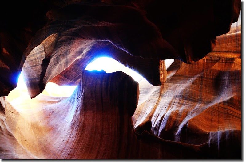 1. 上羚羊峽谷才有陽光穿過石縫攝入谷中的光影變化,缺點是人多無法靜心拍照;下羚羊峽谷捕捉不到陽光攝入谷內的光影變化,但人少可以慢慢攝取柔和光線在峽谷內反射的照片。